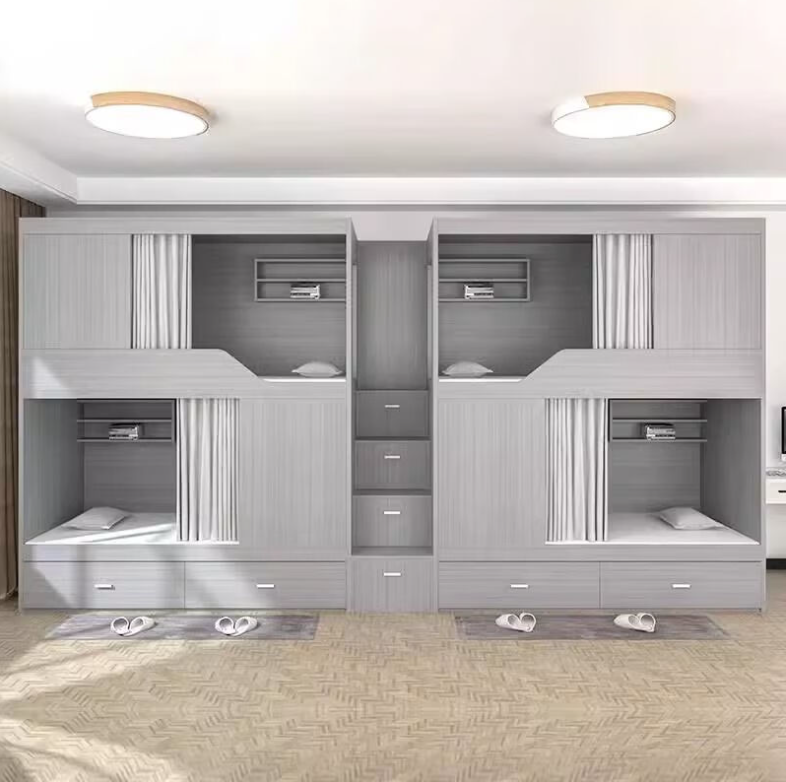 ?空間利用與效率?:太空艙公寓床采用垂直堆疊的方式,極大地節省空間,特別適合空間有限的宿舍、公寓等場所。其模塊化設計使得可以根據實際需求進行靈活組合和調整,滿足不同場景下的使用需求?。